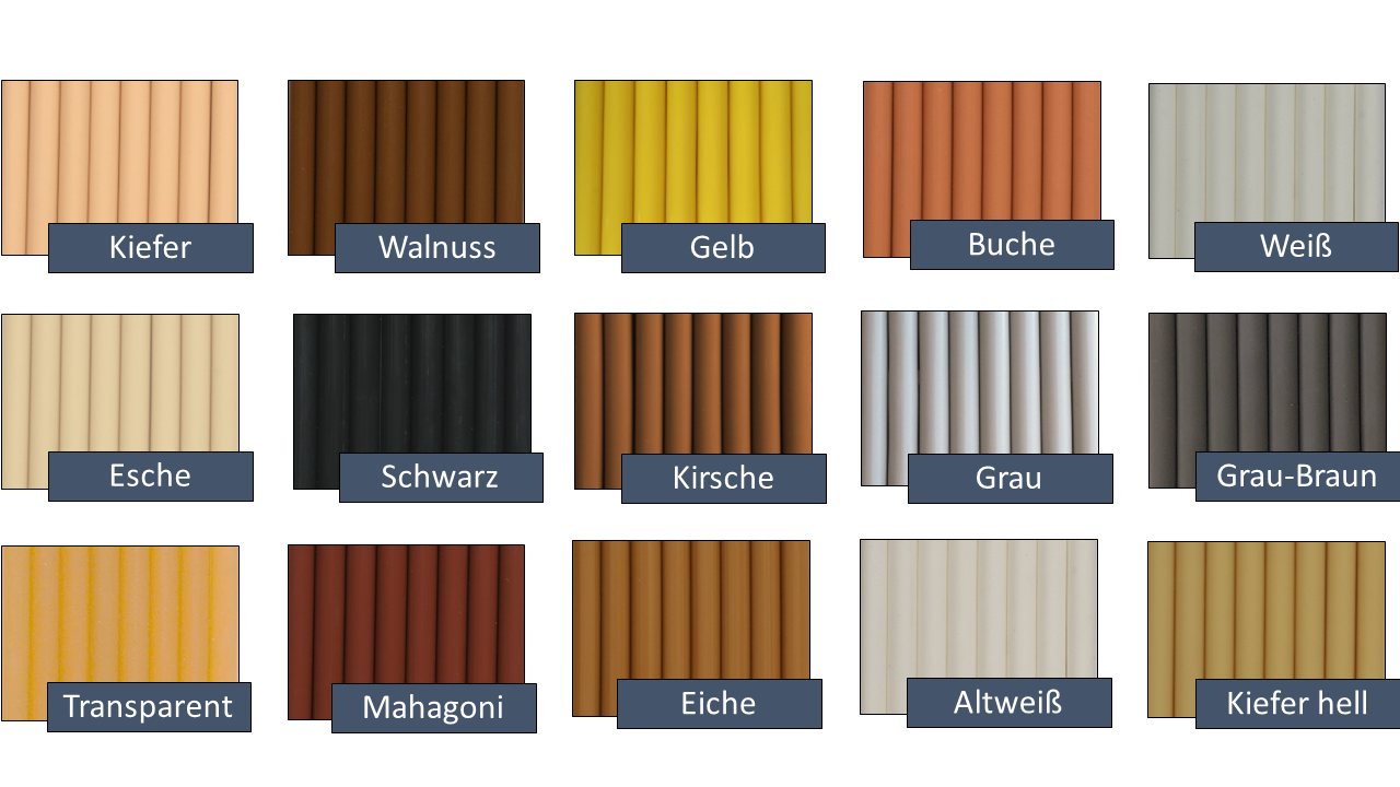 Wood Repair Astfüller 300 mm – Professionelle Holzreparatur leicht gemacht Der Wood Repair Astfüller 300 mm ist die ideale Lösung für alle, die Astlöcher, Risse, Kratzer oder abgeplatzte Stellen in Holz schnell, dauerhaft und sauber reparieren möchten. Ob Heimwerker oder Profi – mit diesem flexiblen Holzreparaturmaterial erzielen Sie hochwertige Ergebnisse im Innen- und Außenbereich. Vielseitig einsetzbar für alle Holzarten & Anwendungen Perfekt geeignet für: Möbelreparatur (Tische, Schränke, Kommoden) Restaurierung alter Holzfenster & Türen Ausbesserung von Massivholztreppen & Dielen Reparatur von BSH-Holz, Fassadenverkleidung, Gartenmöbeln und Holzdecken Die Astfüller-Stäbe (Ø 12 mm, Länge 300 mm) lassen sich mit einer Heißklebepistole auftragen und härten schnell aus. Nach dem Abkühlen können sie leicht gehobelt oder geschliffen und anschließend mit Lack, Öl, Lasur oder Beize weiterverarbeitet werden. Extrem beständig & langlebig Dank ihrer UV-Stabilität, Wetterfestigkeit und Elastizität eignet sich der Astfüller hervorragend für den Außenbereich. Auch bei Temperaturschwankungen bleibt das Material formstabil und sinkt nicht ab – ideal für dauerhafte Reparaturen ohne Nacharbeit. Einfache Anwendung in 3 Schritten Erwärmen: Stab in die Heißluftpistole einsetzen und Material auf ca. 160–190 °C erwärmen. Einfüllen & Kühlen: Füllmaterial in das beschädigte Holz einbringen, anschließend mit einem Kühleisen abkühlen. Finish: Nach dem Aushärten den Überschuss abtragen, schleifen und die Oberfläche behandeln. Erhältlich in vielen Holzfarben Ob Eiche, Kiefer, Buche, Mahagoni oder Weiß – für jede Holzart gibt es den passenden Farbton. So lassen sich Reparaturen nahezu unsichtbar durchführen. Für Profis & Heimwerker entwickelt Der Astfüller ist ungiftig, geruchsneutral und einfach zu verarbeiten, wodurch er sich auch bestens für Innenräume eignet. Ob im Handwerk, in der Möbelproduktion oder für DIY-Projekte – Wood Repair liefert professionelle Qualität, auf die Sie sich verlassen können. Lieferumfang 9 Stäbe à 300 mm LängeØ 12 mm passend für gängige Astfüller- / Schmelzpistolen