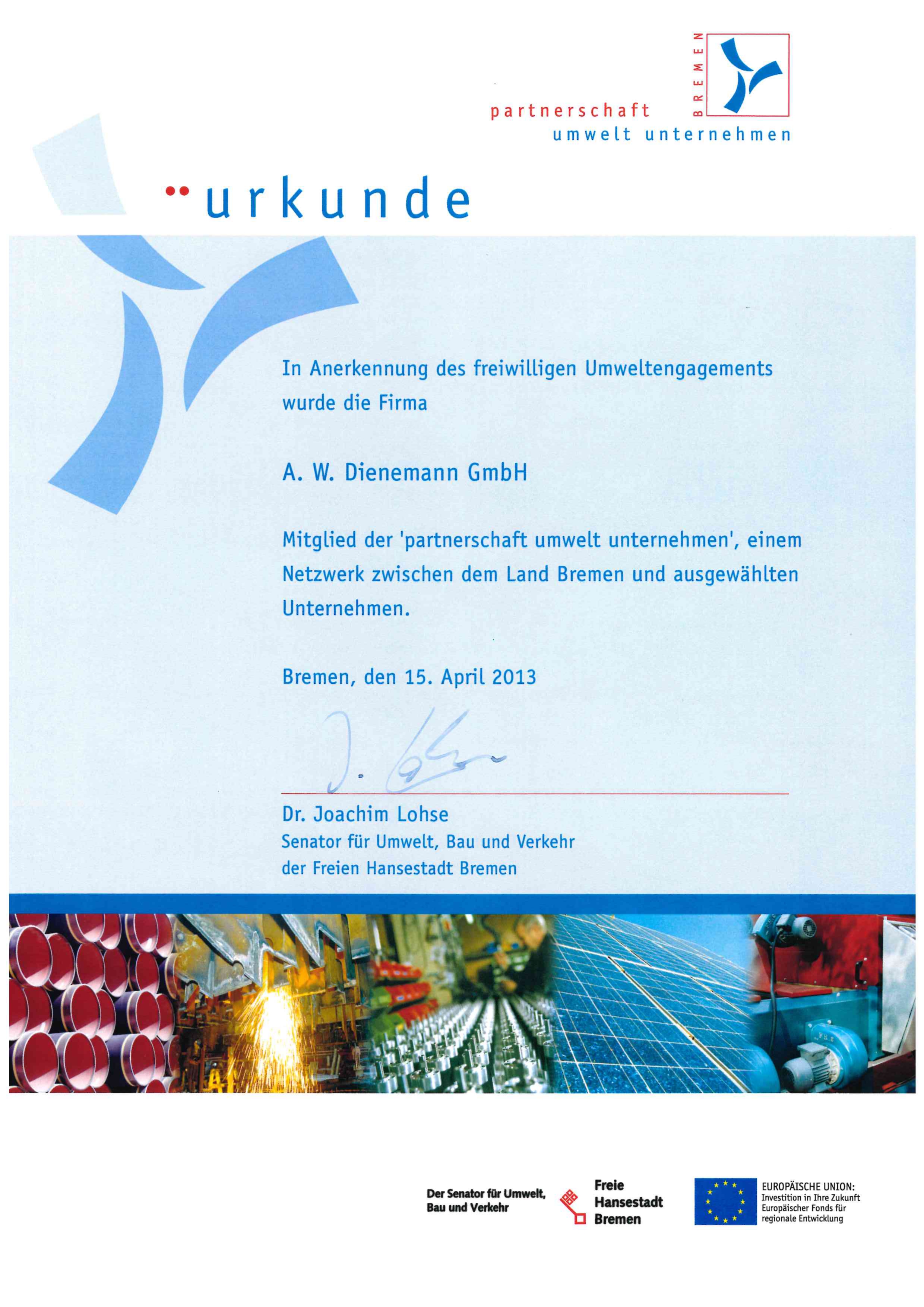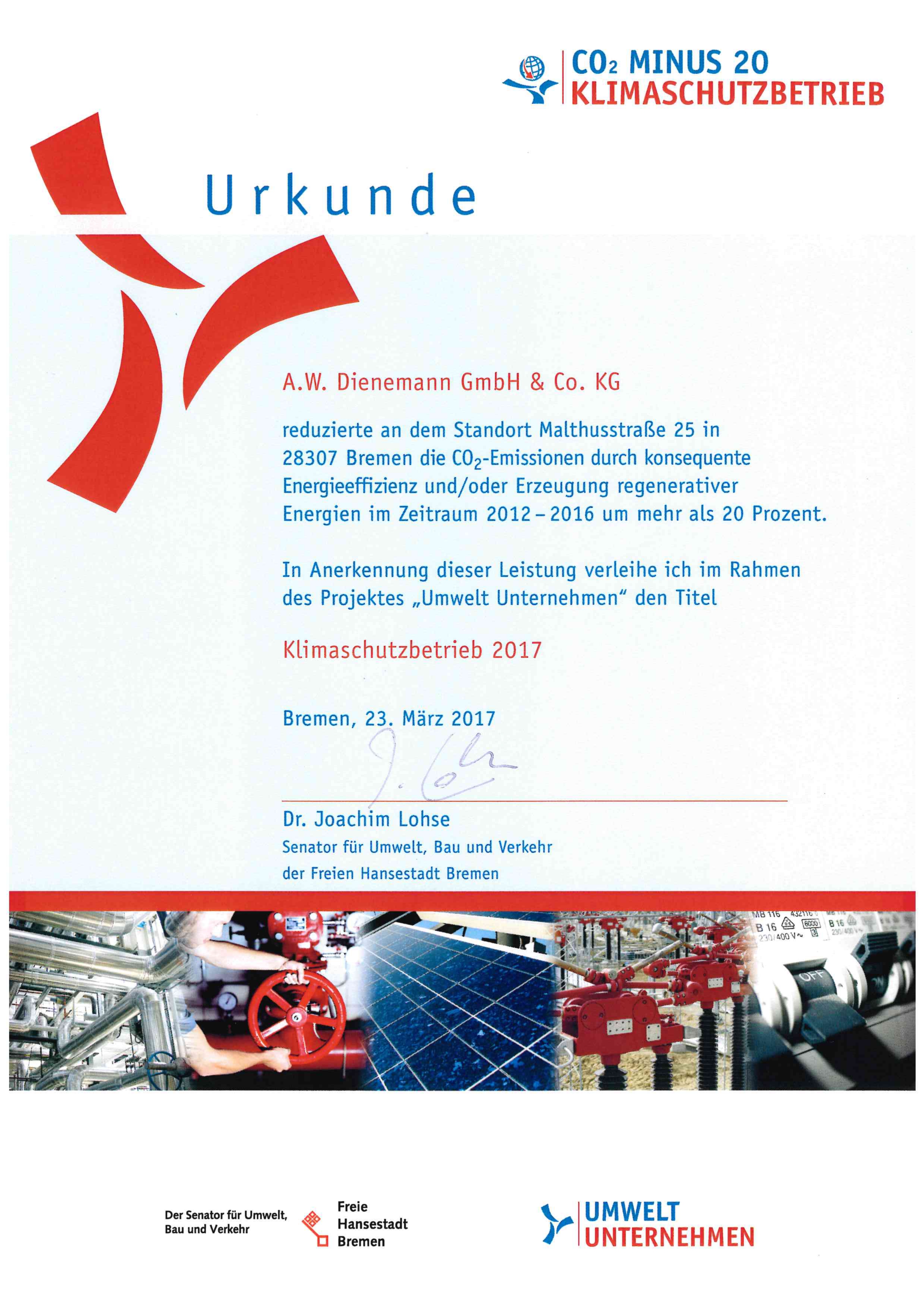 Durch die Installation einer Photovoltaikanlage und die konsequente Umstellung auf LED-Beleuchtung konnten wir unsere CO₂-Emissionen um mehr als 85 % senken. Für dieses Engagement wurden wir 2017 vom Bremer Umweltsenator als „Klimaschutzbetrieb CO₂ minus 20“ ausgezeichnet – eine Anerkennung, die uns motiviert, diesen Weg weiterzugehen.