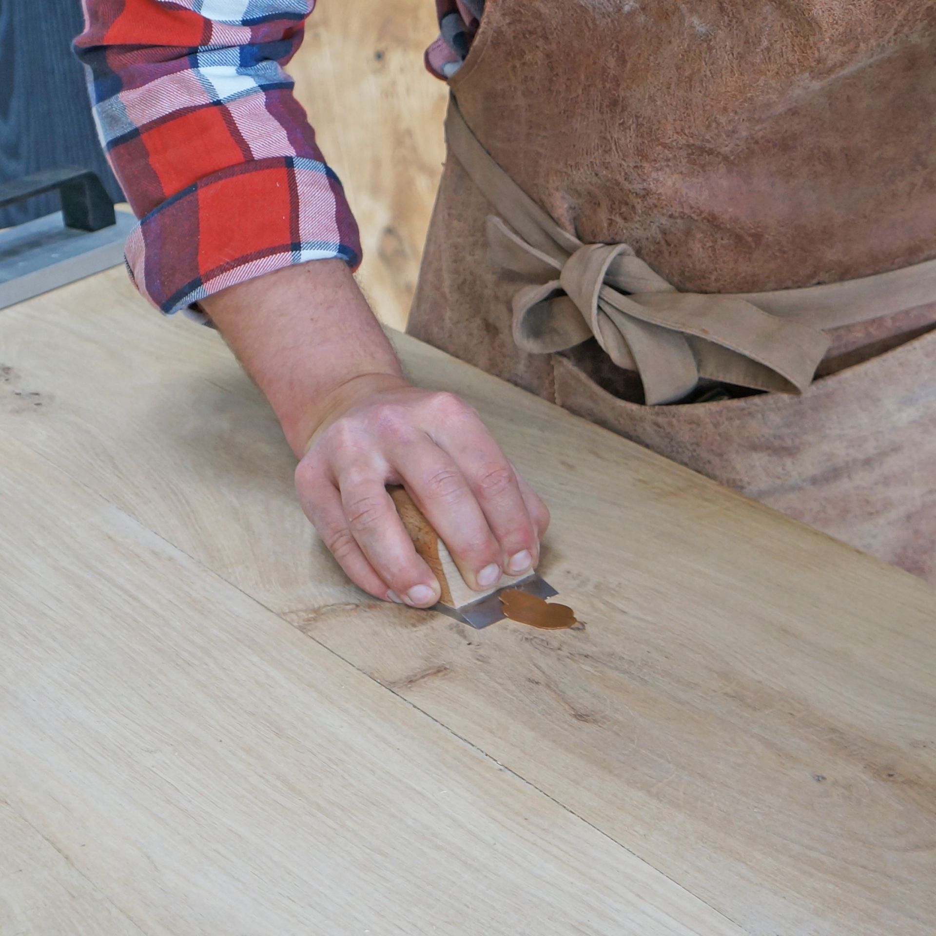 Der Wood Repair Hobel ist das perfekte Werkzeug, um frisch aufgetragene Astfüllungen oder andere Holzreparaturen sauber zu glätten und bündig zu bearbeiten. Kompakt, robust und besonders handlich – ideal für Profis und Heimwerker.