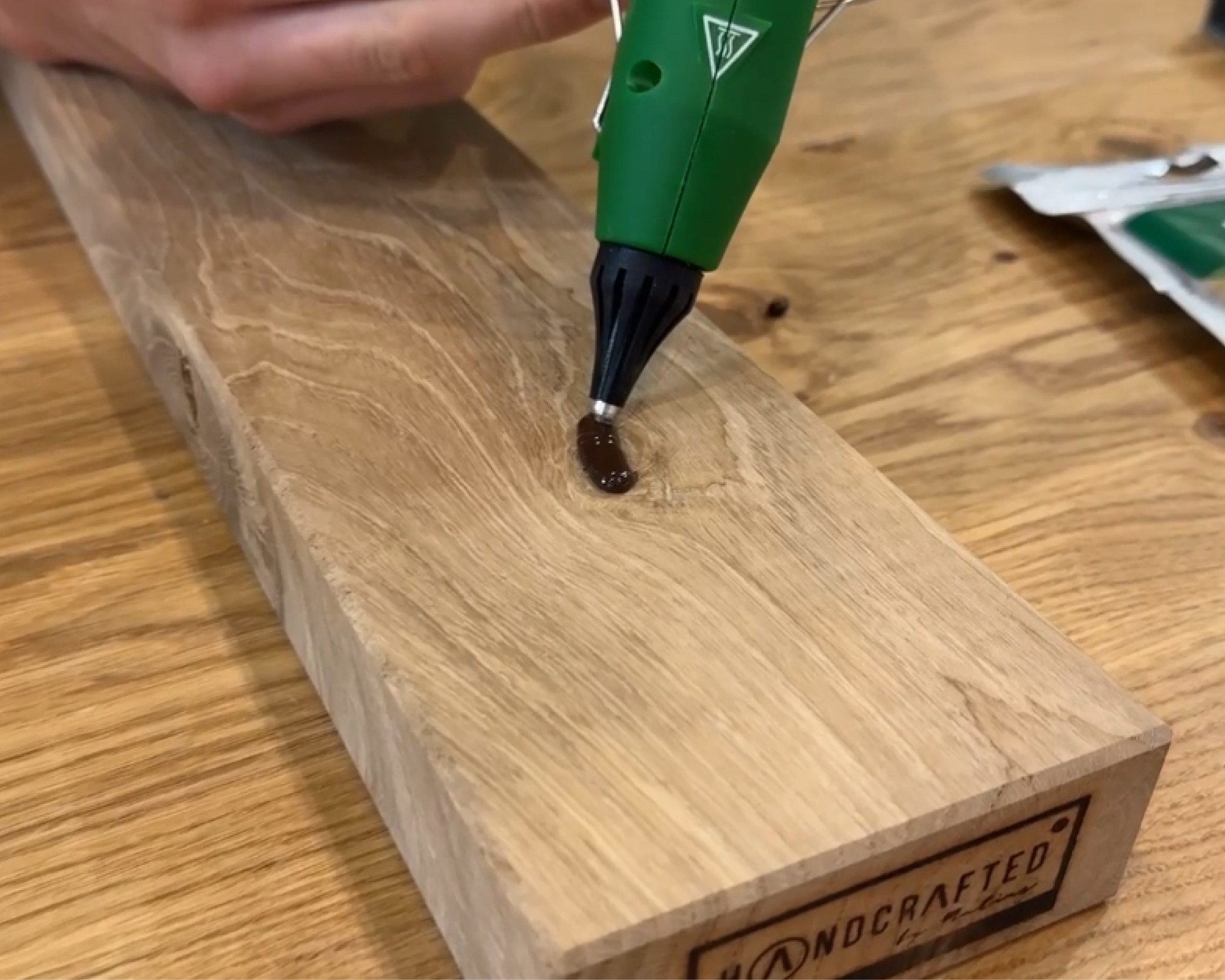 - Applizieren: Astfüller in Schäden aufschmelzen